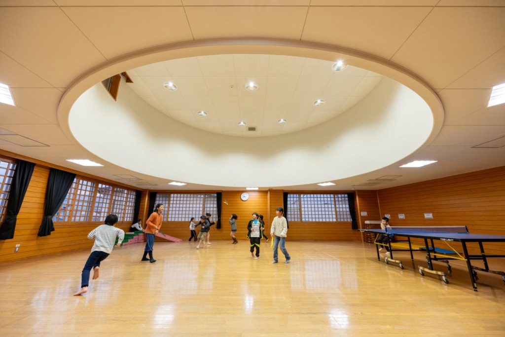 卓球、とび箱、トランポリンなど、天気に関係なく、体を思いっきり動かして遊べます。月1回、スタッフと一緒に体力増進タイム「めぇ~キッズタイム」(16時〜16時45分)を実施しています。