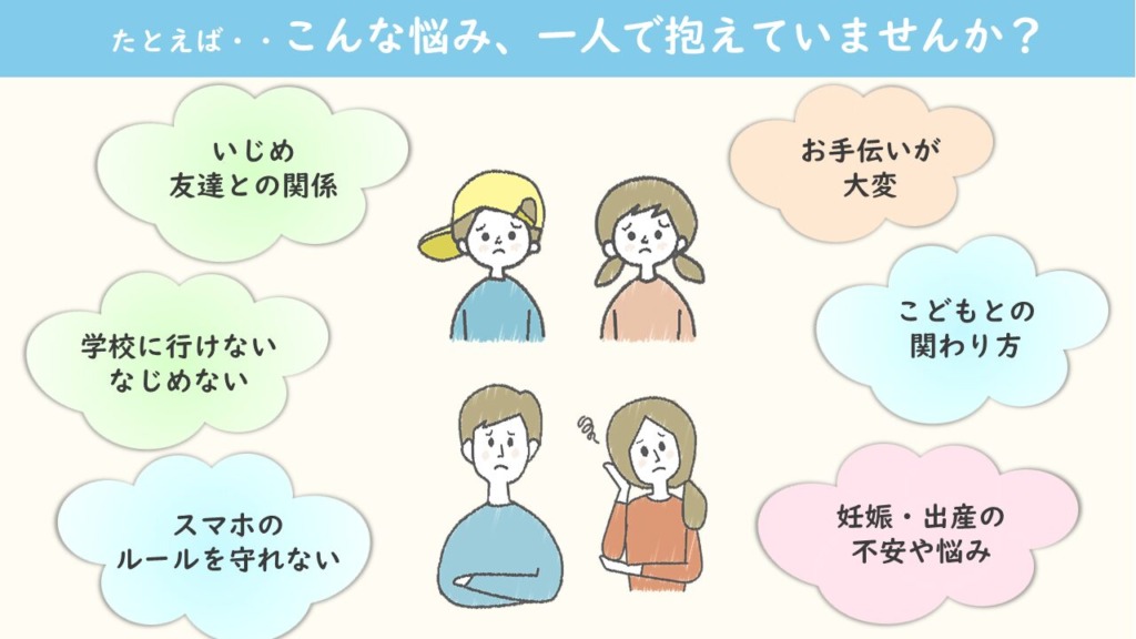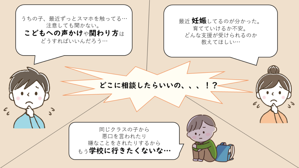 「こども相談」は0歳から18歳までのこどもや子育てに関する相談窓口です。