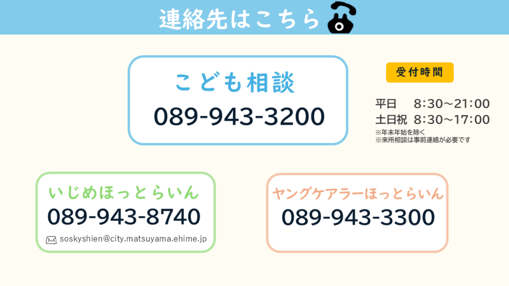 E-mail:kodomosoudan@city.matsuyama.ehime.jp